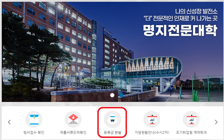 ※ 등록금 환불 신청 즉시 입학포기로 인정되므로 신중히 신청해주시기 바랍니다.